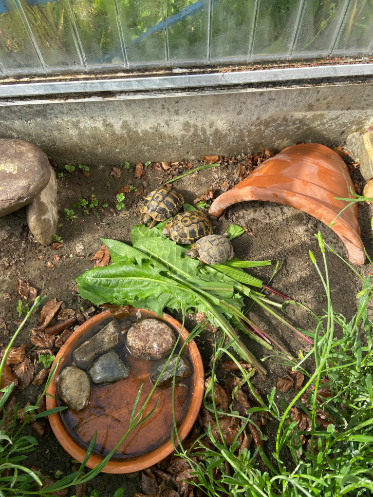 Weitere Tiere auf unserem Hof: Wir halten eine Hühnergruppe mit einem Hahn und haben 3 griechische Landschildkröten
